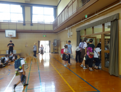 5時間目は、学区集会をしてからの避難訓練、引き取り訓練がありました。暑い中、たくさんの保護者の方にご参加いただきました。ありがとうございました。