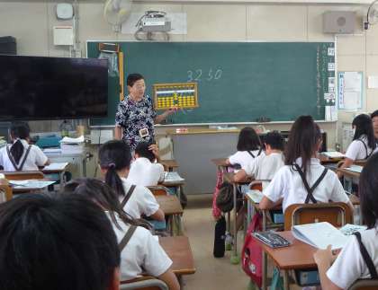 2学期1回目のそろばん学習です。夏休みをはさみましたが、復習をすることで、すぐにパチパチとそろばんをはじく音が教室いっぱいに聞こえました。