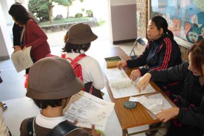 11月3日(祝)に行われる「PTA学校探検スタンプラリー」の受付が、本日と明日の2日間、PTAの方々によって行われています。