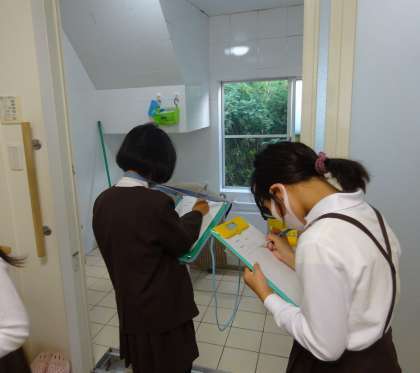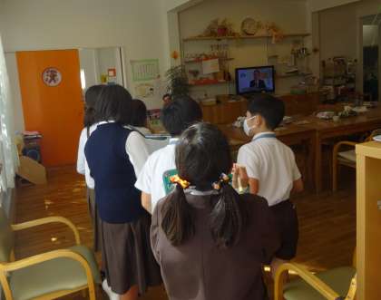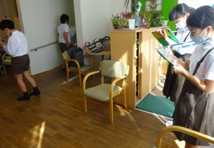 2学期は、「高齢者福祉」について学習しています。今日は、学校のすぐ前にある高齢者施設「歩楽里」さんへ見学に行きました。施設の中では、トイレやお風呂まで見せていただき、自分の家との違いを見つけていました。また、利用者さんに声をかけてもらってお話をするなど、楽しいひと時を過ごしました。