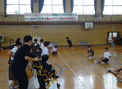 平野特別支援学校との交流会がありました。コロナ禍で長い間会うことができなかったので、久しぶりの交流です。一緒にダンスをしたり、ゲームをしたりして楽しいひと時を過ごしました。最後は、アーチを作ってお見送りしました。