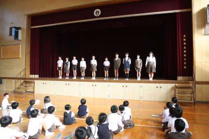 今日、児童集会で後期鶴橋向上委員会のメンバーが自己紹介をしました。