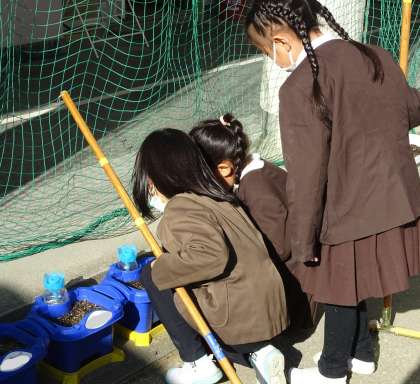 2年生では、なわとびがブームとなっているようです。1年生は、先日植えたチューリップの観察・お世話に励んでいます。早く芽が出ないかなあ。