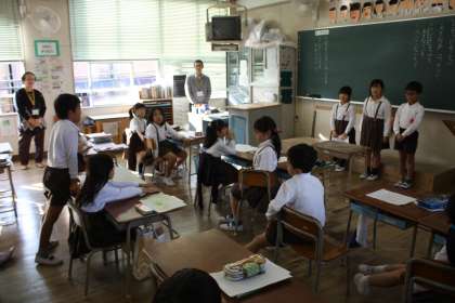 2年生は国語科で学習した「お手紙」の物語を3人グループで発表しました。