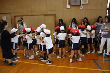 1年生は講堂で体育の学習をしました。
