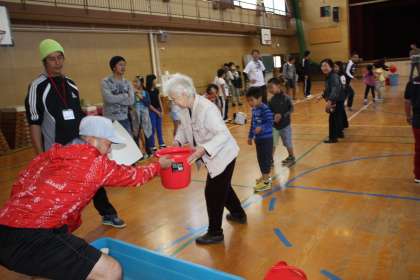 ふれあい協議会・はぐくみネット・生涯学習など地域のさまざまな人たちの協力で「スポーツフェスタ」が開催されました。バケツリレーや綱引きなどの競技に子どもたちも参加しました。また、PTAの皆さんが紙芝居やスマートボールのコーナーを用意してくださいました。フードコートでは、うどん・おにぎり・フランクフルト・ぜんざいなどの食事が用意されていて、保護者や地域の方々だけでなく、子どもたちも、一緒になって楽しむことができるイベントでした。