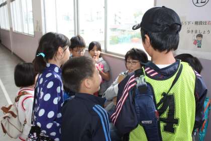 PTA主催「校内探検スタンプラリー」が開催されました。学校内に設けられた関所を、異学年のチームで巡り、合計タイムをそれぞれの班で競いました。