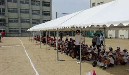 朝からもと鶴橋中学校に行き、運動会の全体練習を行いました。