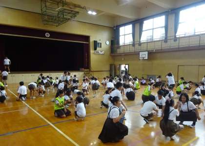 集会委員会からは、進化じゃんけんのゲームがありました。じゃんけんに勝てば、カエル→ウサギ→ゴリラ→人間へと進化していきました。