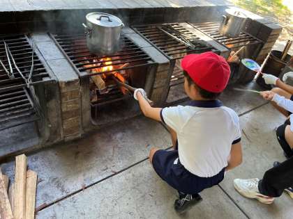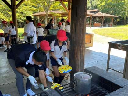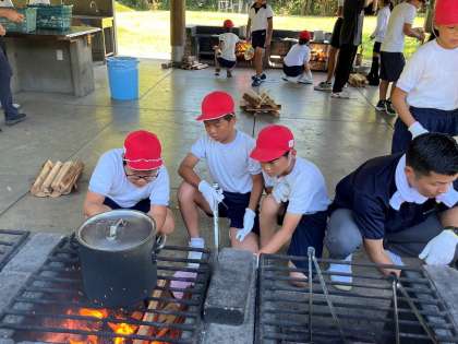 野外炊飯が始まりました。