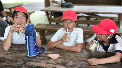 おやつにジュースを飲みました。