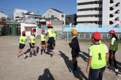 北鶴橋小学校との合同4チームにで、リレーや大なわとび、ドッジボールをしました。