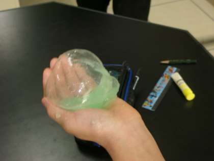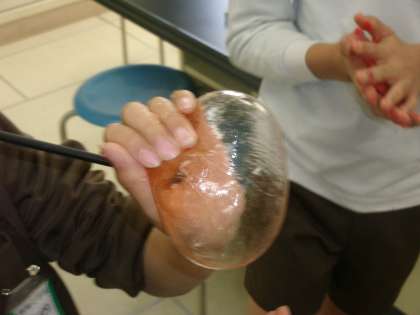 スライムのかたさや息の吹き入れ方に気をつけながら完成させることができました。