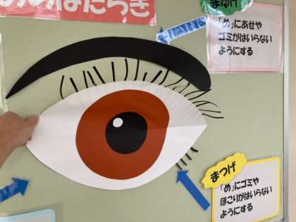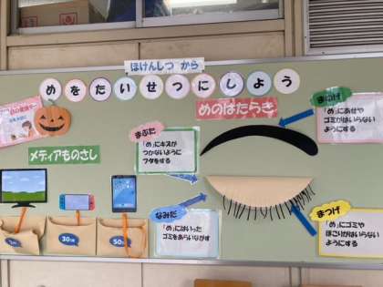 10月10日の目の愛護デーに合わせて、掲示板にも大きな目が登場しました。