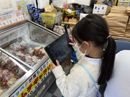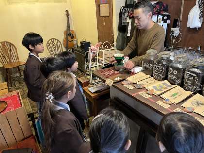 1学期に見つけた町のお店などに自分たちで電話をして、許可を取ってからインタビューに行きました。お仕事の様子を見せてくれたり、質問に答えたりしてくれました。