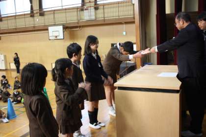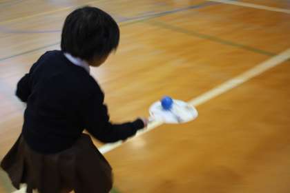 うちわにボールをのせて運ぶゲームです。落としてしまったら、落とした場所からのスタートです。みんな声を掛け合いながら楽しく取り組んでいました。