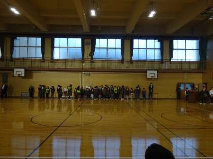 また、三浦知良(キングカズ)さんからサッカーボールの寄贈についての説明や、PTAから野球グローブとゴムボールをいただいたことについてお話がありました。