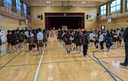昨日、朝の会の時間に「見まもり隊よろしく集会」がありました。地域の見まもり隊の皆さんのおかげで安全に登校できているということを改めて知ることができました。