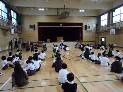 児童集会 ワクにこ班の顔合わせ