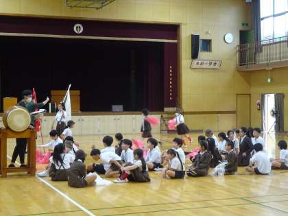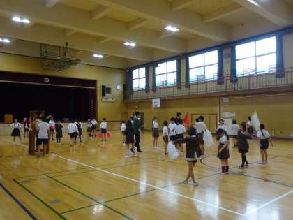 今日も全力で応援の練習に取り組んでいます。整列し、高学年らしくきびきびとこうどうしていました。