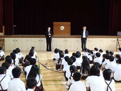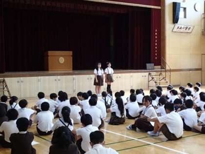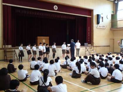 全校朝会がありました。教育実習生のお別れのあいさつやデジタルドリルをがんばった児童の表彰、児童会からの連絡などを行いました。