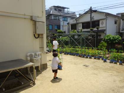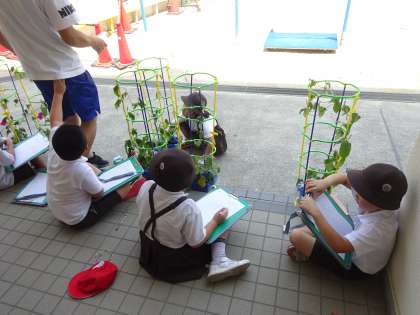 6月20日(金)に1年生が育てているあさがおのかんさつをしました。見たり、触ったりして気づいたことをていねいにかいていました。
