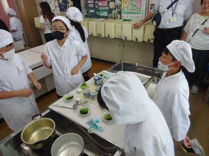 4年生は算数「角の大きさの表し方を調べよう」、5年生は「はじめてのクッキング」、6年生は理科「問題解決実験」の学習でした。