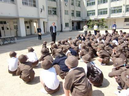 子どもたちは、ハンカチを口にあて、静かに素早く運動場に逃げることができました。