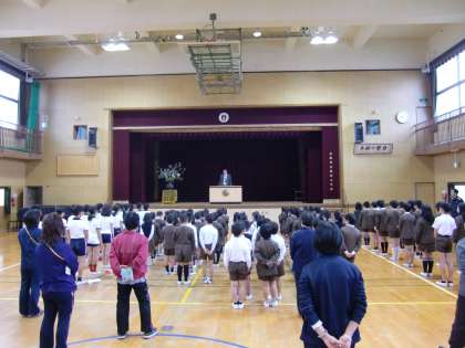 代表の6年生の後に続いて、元気よく「おはようございます!」とみんなであいさつ。