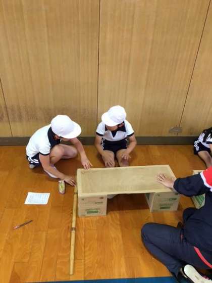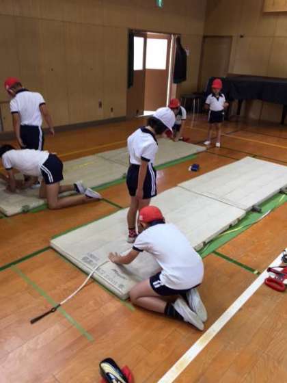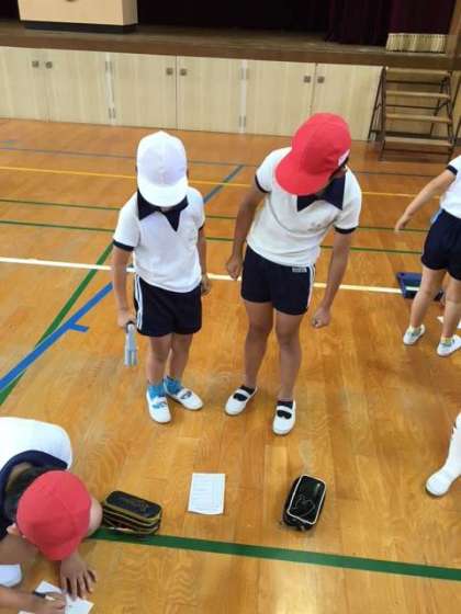 1年生は初めてのスポーツテストです。6年生のお兄さんお姉さんに測ってもらいました。がんばってます。