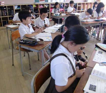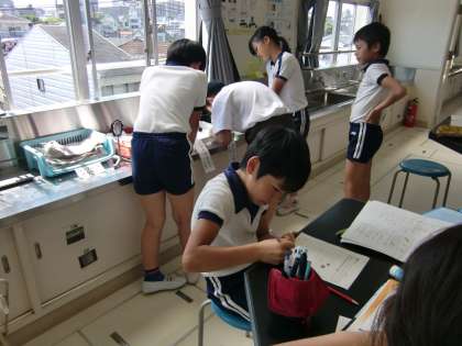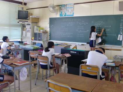 高学年の授業の様子です。4年生は音楽の時間です。リコーダーも2年目。きれいな音色が出ていました。5年生は理科の時間。今日はめだかのたまごを観察しました。「ピクピク」と動いているたまごに興味津々でした。6年生は算数です。xとyを使った式に挑戦です。練習問題をたくさんして、マスターできたかな?