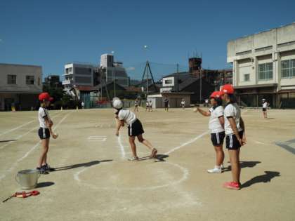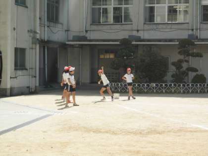 5・6年生は運動場で50m走とソフトボール投げの測定と、講堂でシャトルランの測定をしました。ソフトボール投げでは青い空に白いボールが高く飛んでいました。さすが高学年。シャトルランでは自分の限界に挑戦?(^^) 走った後は顔を真っ赤にしつつ、「80回超えた」「ふーー」とにこやかな顔が見られました。