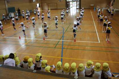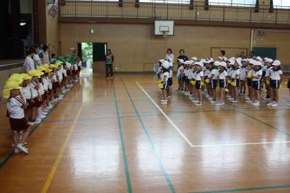 鶴橋幼稚園のももぐみさんときくぐみさんが、体育館にきてくれました。