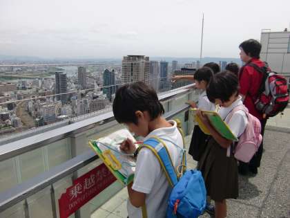 スカイビルでは、展望台から見えるきれいな景色に驚いていました。