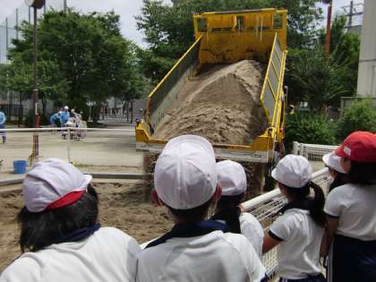 砂場には、2tの新しい砂が運ばれ気持ちの良い砂場に生まれかわりました。