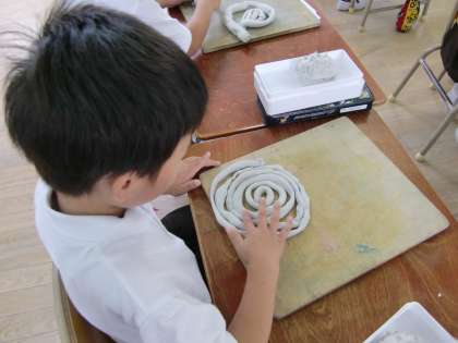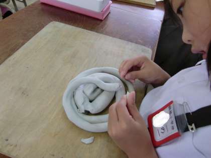 くねくねへびは、粘土を細く長く伸ばして作ります。