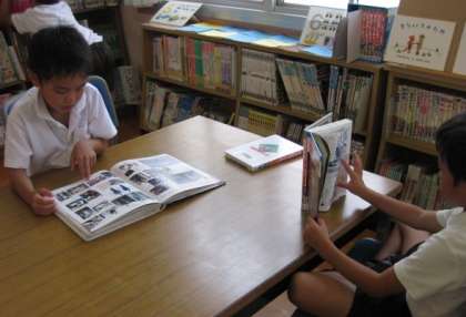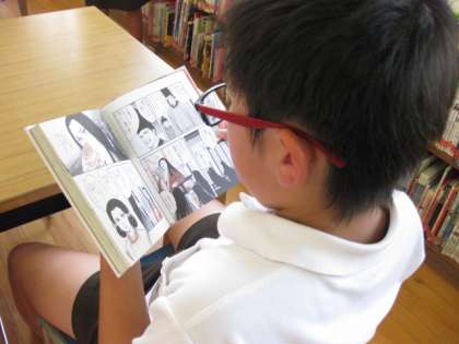 お昼休みには、たくさんの子どもたちが本を読みにきています!