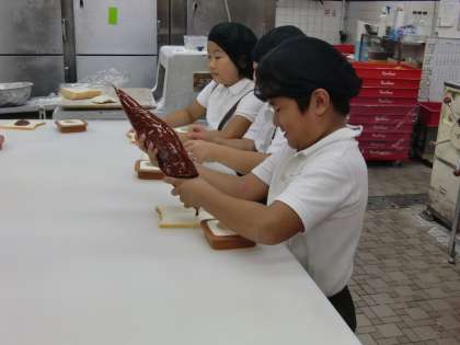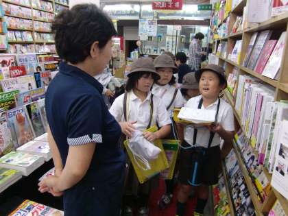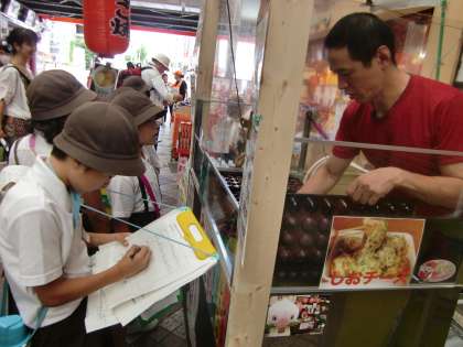 パンやさん、たこやきやさん、本やさんに行きインタビューをしたり、体験したりしました。