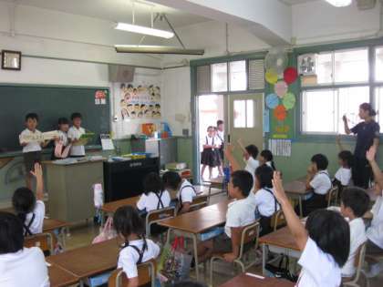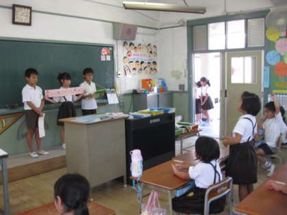 今日は、各クラスにまわって、「公園で遊んでいて困ったことはないか」などアンケートをとりに行きました。
