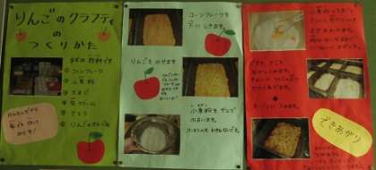 給食調理員さんが「りんごのクラフティ」の作り方を掲示板に貼ってくれました!給食人気メニュー第2位のりんごのクラフティ。「作り方は簡単だよ(^^)」と教えてくれました。夏休みにお家で作ってみてはどうですか(^^)?