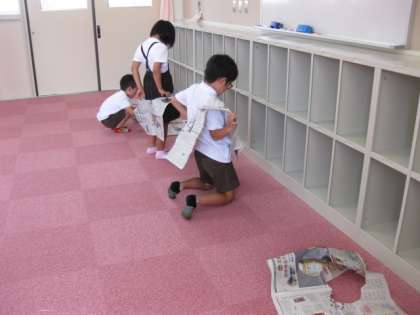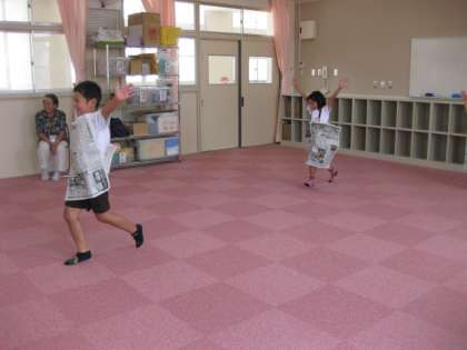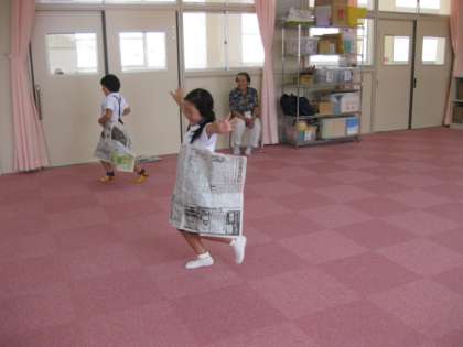 新聞紙を使って遊びました。
