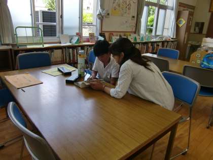 図書ボランティアの方に、本を読んでもらっている子どももいます。