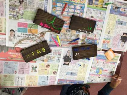 焼き板の色つけ中です。