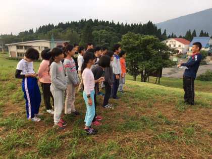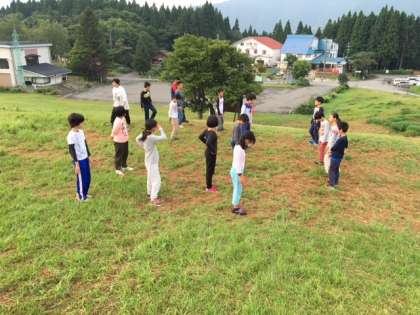 高原で体操をしました。