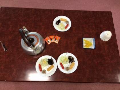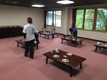 食事係さんが朝食の準備をしています。自分達で考えてできるようになりました。