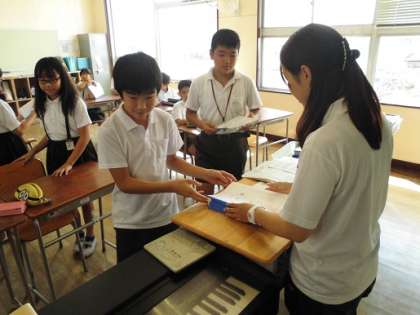 夏休みの宿題や通知表を提出した後に、2学期から使う「下」の教科書に名前を書きました。2学期に向けて、学習の準備はばっちりです。