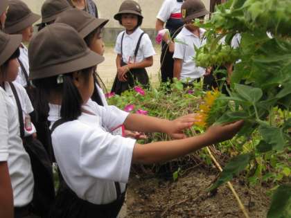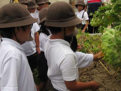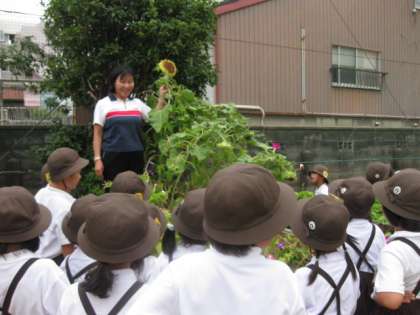 ひまわりは、子どもたちの背の高さを越し、大きく成長しています!