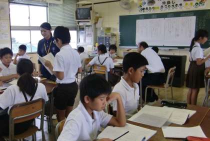 6年生の国語の学習の時間です。前で授業をすすめているのは実習生の先生です。今日は、ただ詩を音読するだけでなく、自分の感じたことが相手に伝わるよう音読することを目標に詩を読みました。班のメンバーとそれぞれの読み方を聴き合い、アドバイスをしたりいいところを伝えたりしました。どの班もじっくりと、一人ひとりの声に耳を傾けていました。