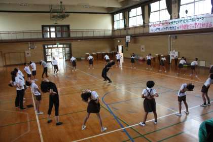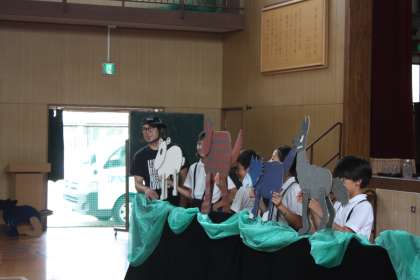今日は、人形劇の劇団員さんに来ていただき、6年生が参加してワークショップを行いました。