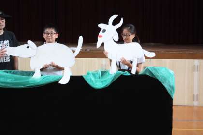 子どもたちは、自分で作った人形を操っていろいろな表現をしました。